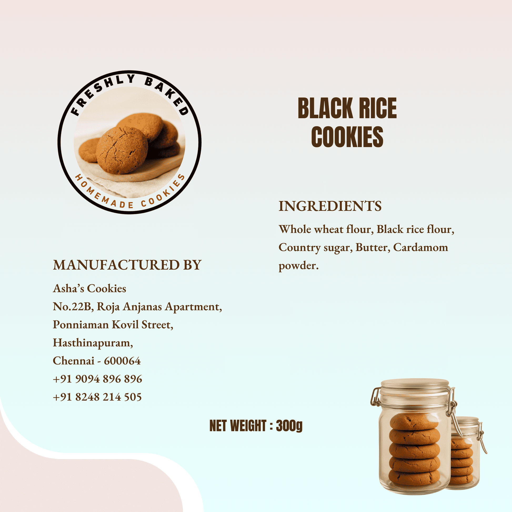 Made with the nutrient-rich Karupu Kavuni (black rice), these cookies are a rare and exotic delight.